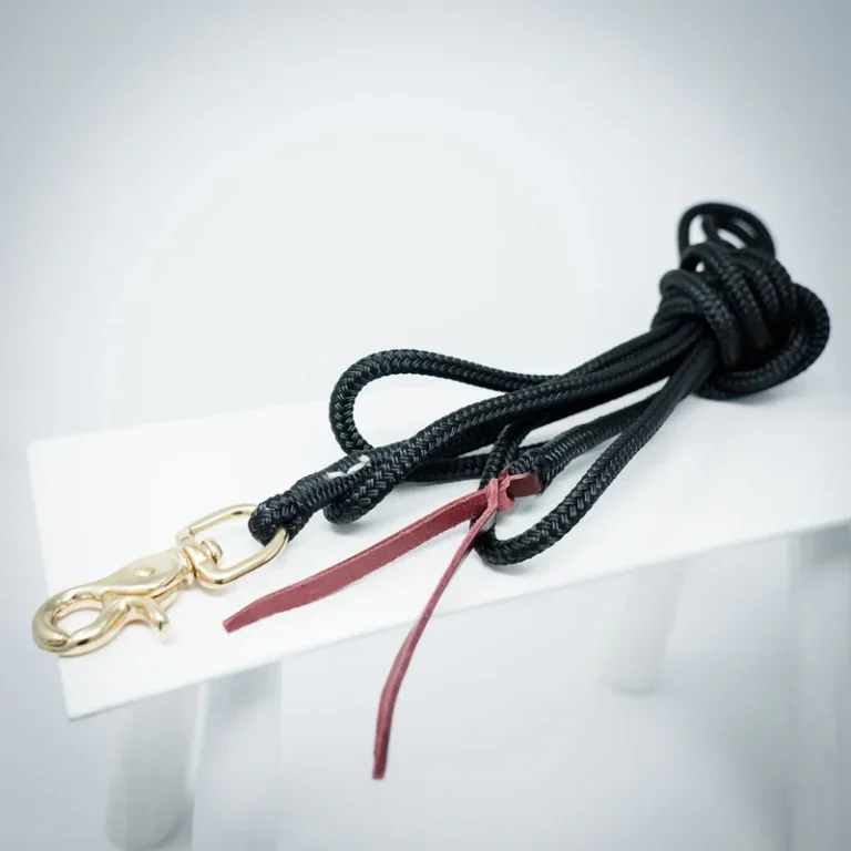 Dieses ganz spezielle Featherline Seil von Brockamp ist mein absoluter Favorit für die feine Kommunikation. Es hat einen feinen kleinen Karabiner und eine vegane Biothane-Schlaufe am anderen Ende. Es ist perfekt für die Verfeinerung deiner Trainingseinheiten oder die feine Handarbeit.